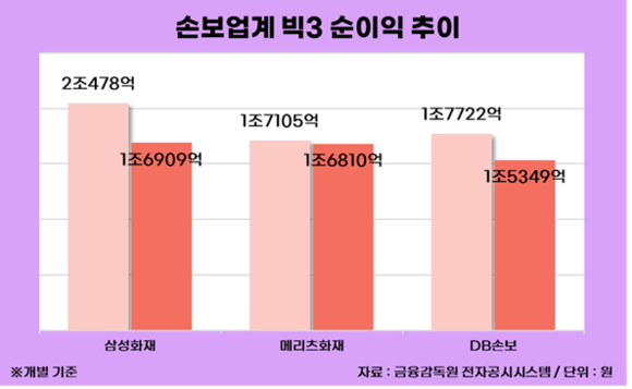 이 기간 삼성화재와 DB손보의 순이익은 17.4%, 13.4%씩 줄었다.
